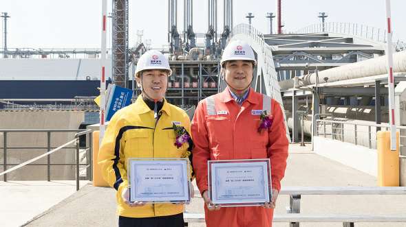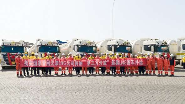乐鱼(中国)leyu·官方网站和国家管网天津接收站共同举行了乐鱼(中国)leyu·官方网站首船LNG接卸和首车发车仪式。国家管网天津接收站总经理张林松和乐鱼(中国)leyu·官方网站智能贸易及输配业务群副总经理尹明分别代表双方互换纪念铭牌。